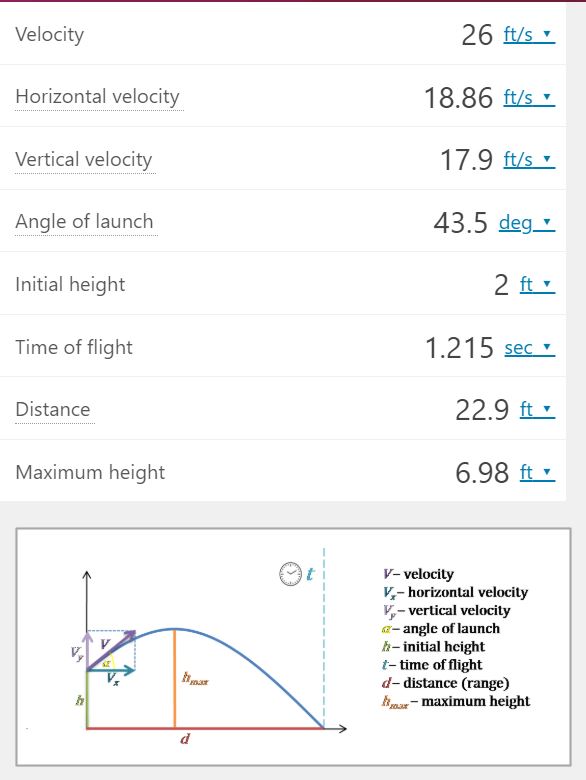 speed of 35.8 m/s when d =35.8/2=17.9 m=59 ft. As