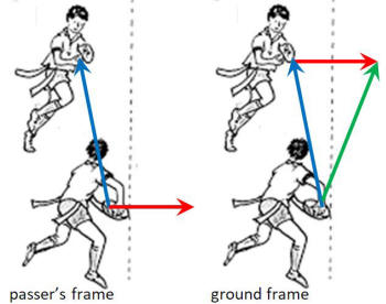 If I am on a moving platform travelling at 20 mph in one direction and a platform is moving towards me at 20 mph, I understand that the relative speed is 40 mph but what would happen if I stepped from one platform to another as they crossed? Would the speed of the platform I moved to cancel my speed in the opposite direction and therefore simply move me at 20 mph in the new direction or would there be a process of braking where I would fall off the back of the platform unless it was long enough to sustain the braking time?
